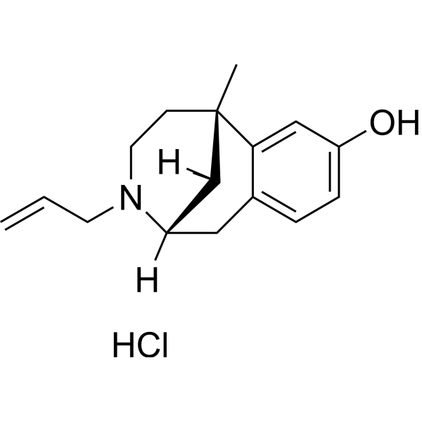 Alazocine (developmental code name SKF-10047), also known more commonly as N-allylnormetazocine (NANM), is a synthetic opioid analgesic of the benzomorphan family related to metazocine, which was never marketed.[1][2][3] In addition to its opioid activity, the drug is a sigma receptor agonist, and has been used widely in scientific research in studies of this receptor.[4][5] Alazocine is described as a potent analgesic, psychotomimetic or hallucinogen, and opioid antagonist.[2] Moreover, one of its enantiomers was the first compound that was found to selectively label the σ1 receptor, and led to the discovery and characterization of the receptor.[4][5] Alazocine has been encountered as a novel designer drug.[6]